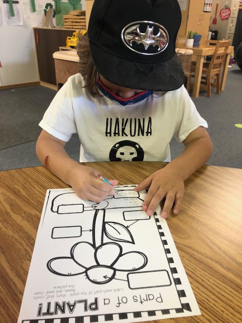 Students learned the parts of a plant. Students were to label and color the plant.